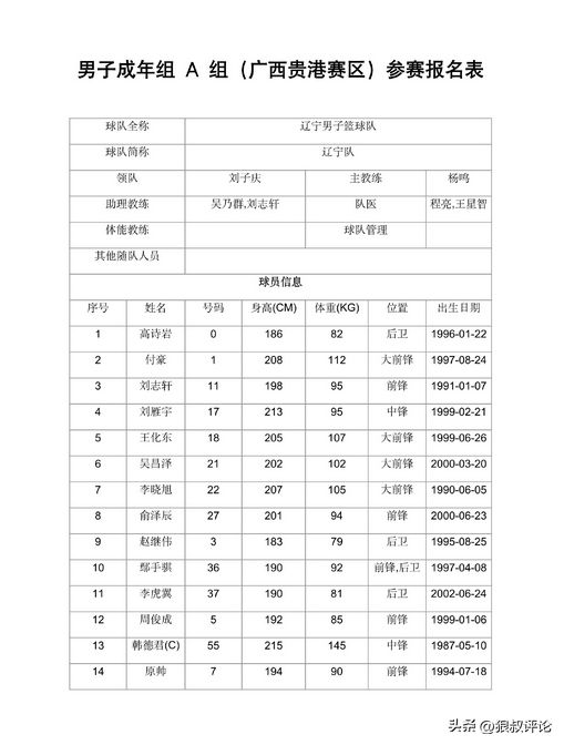 根据中国篮协的官方网站透露,参加全运会男篮成年组预选赛的13支球队的参赛名单进行公示,球员报名已经截止,不得再更换报名人员。